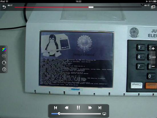 Acima você vê o AVPlayerHD exibindo uma cópia do meu vídeo que mostra o boot do sistema operacional que roda nas urnas eletrônicas, que preparei para o BR-Linux.org.